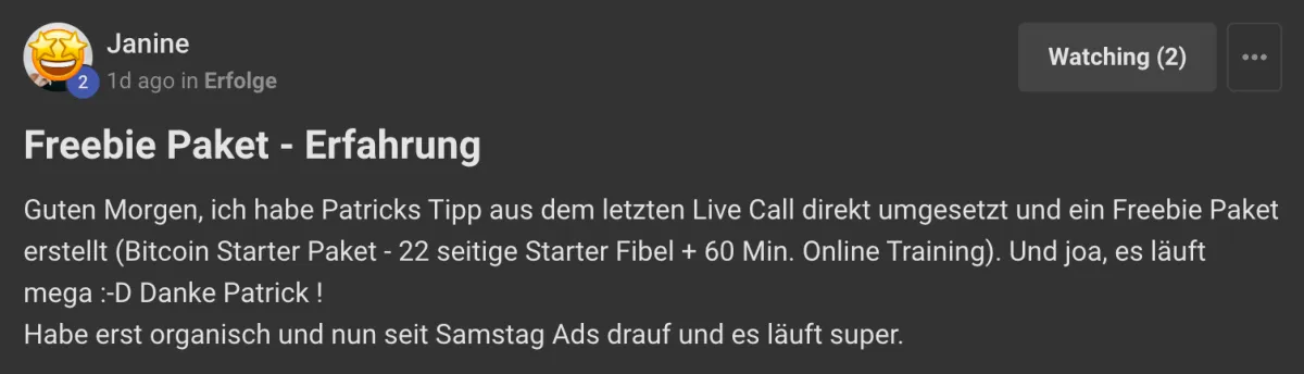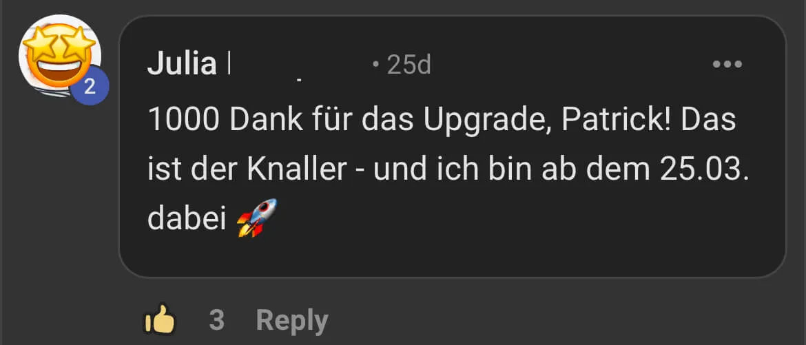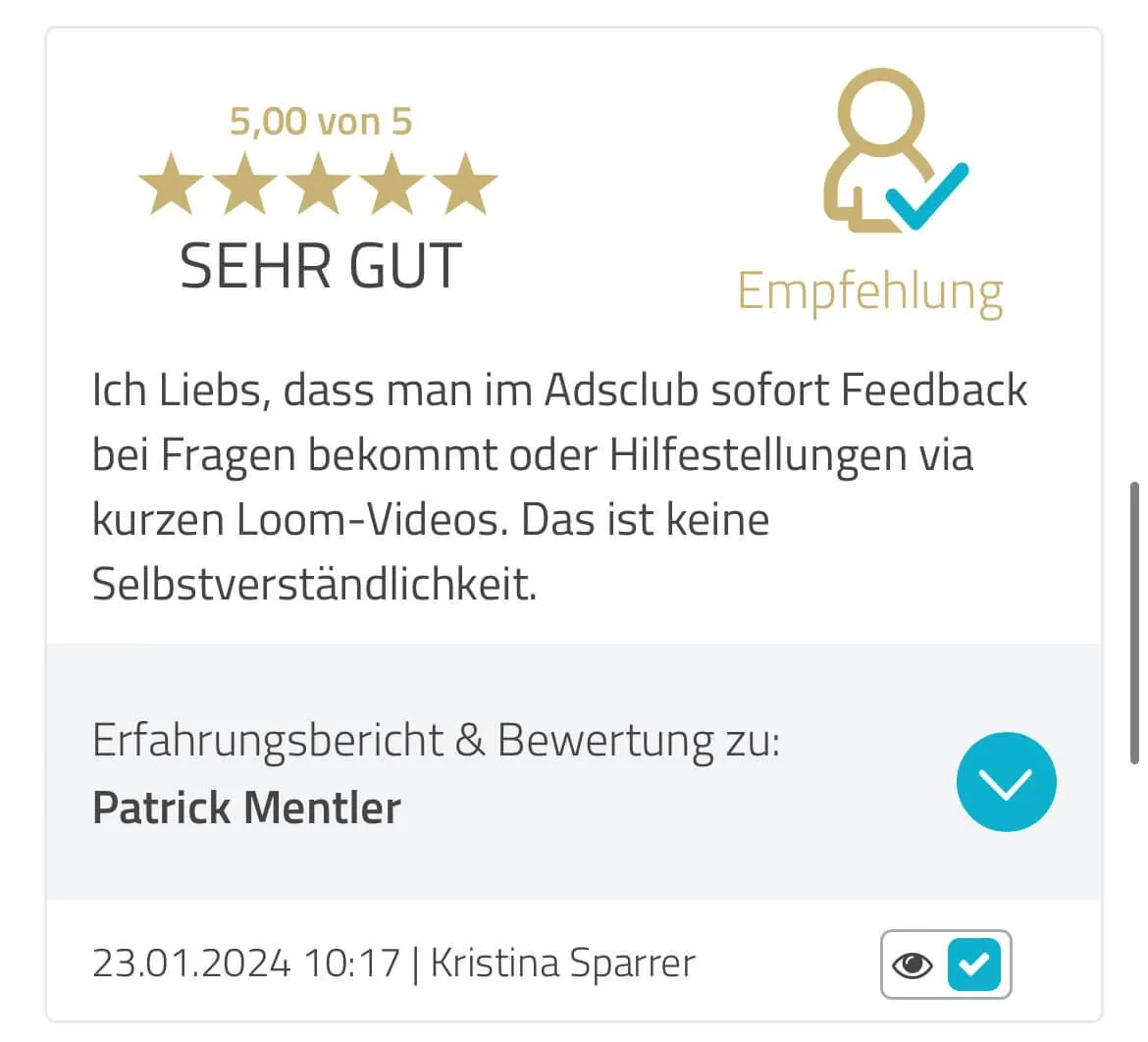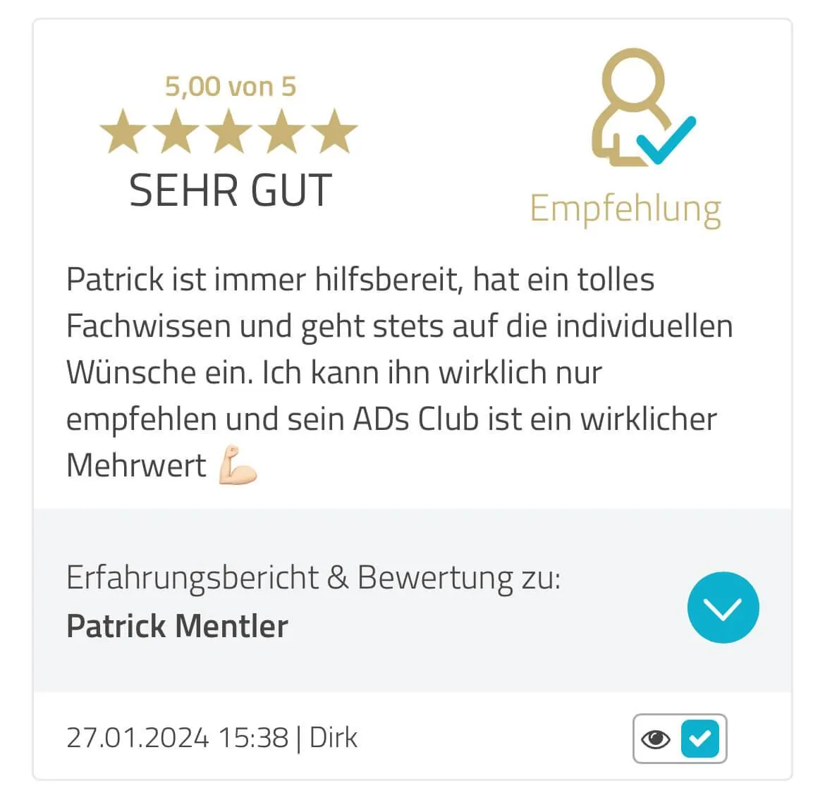 „Für mich ist Patrick the man to ask, wenn es um Ads, Funnel und Strategien im Online-Business geht. Er macht komplizierte Dinge einfach und hands-on – und ist immer am Puls der Zeit.“