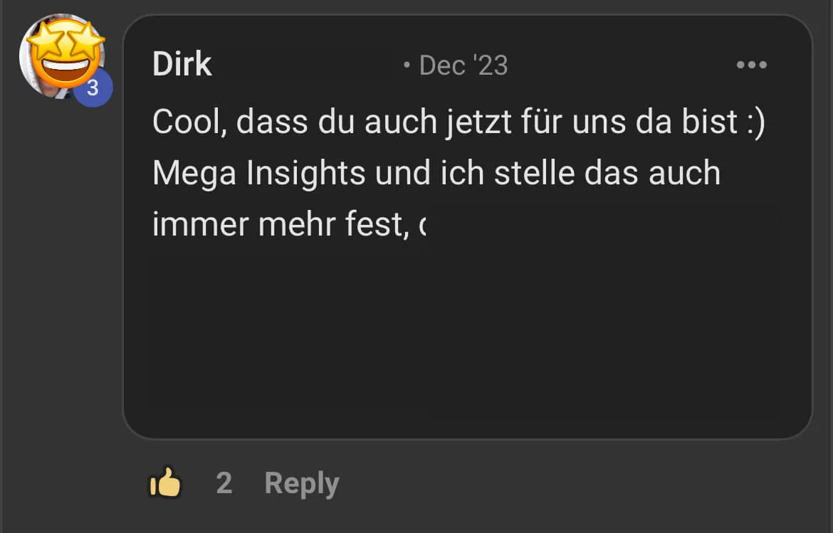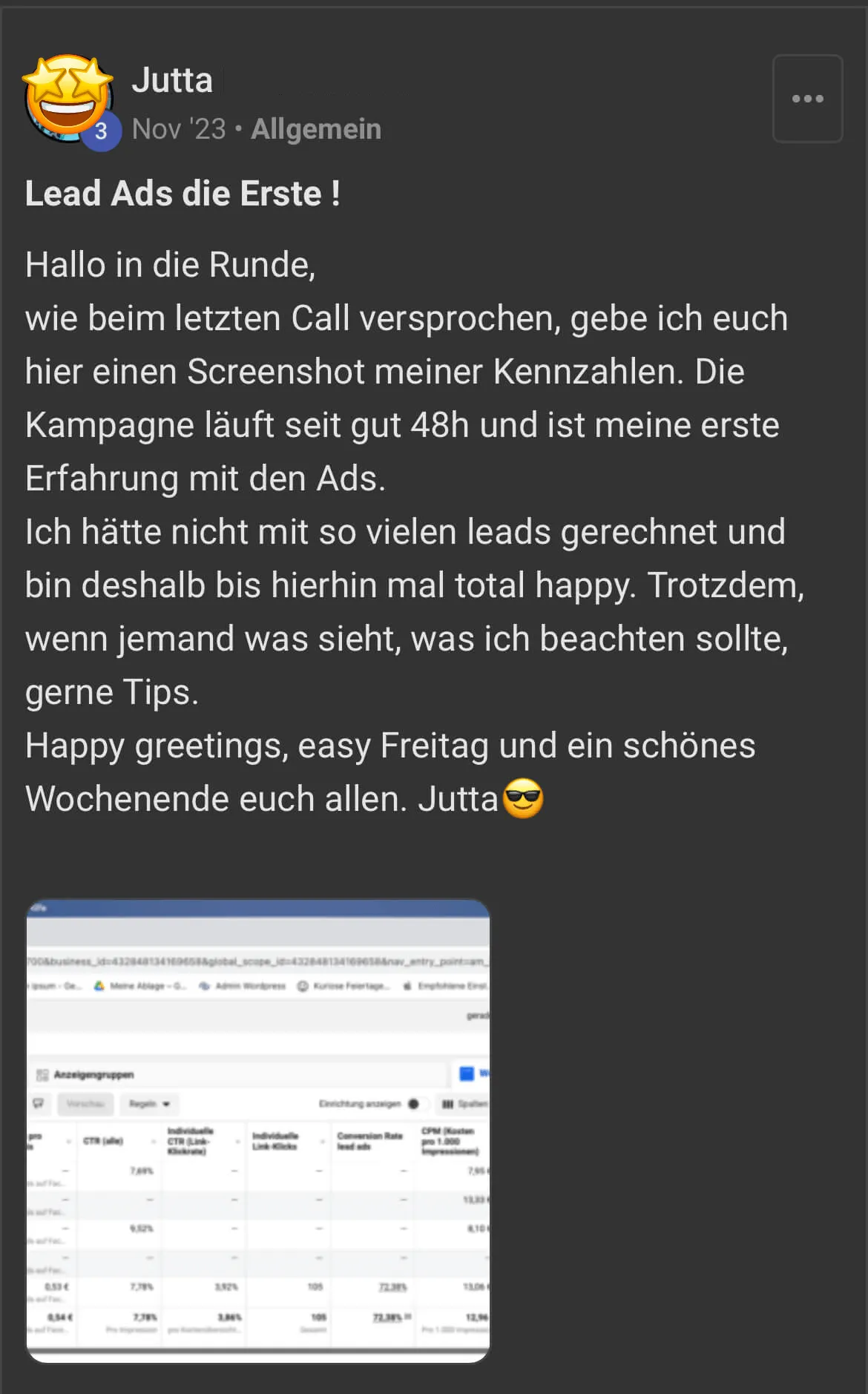 Alle Inhalte sind verständlich, Schritt für Schritt erklärt – und wenn du irgendwo hängst, kommst du in die Q&A Calls, teilst deinen Bildschirm und wir lösen es live gemeinsam.